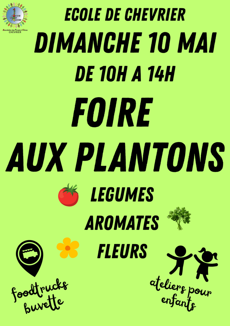 Venez nombreux le dimanche 10 mai à la Foire aux plantons organisée par l’APE ! Foodtrucks, buvette et ateliers pour enfants seront également de la partie.